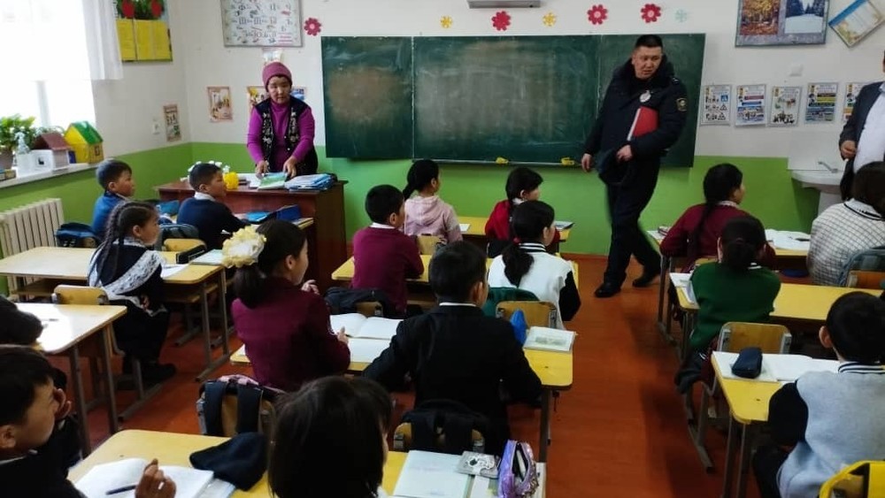 Түптө жол күзөтчүлөр башталгыч класстардын окуучулары менен ачык сабактарды өткөрүшүүдө