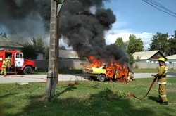 Сүрөт — Ысык-Көлдө жеңил унаа толугу менен өрттөнүп кетти