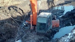 Фото — Түптө сазга тыгылып жаткан экскаваторду чыгаруу аракеттери көрүлүүдө