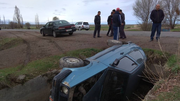 На Иссык-Куле очевидцы догнали микроавтобус, по вине которого опрокинулся автомобиль (фото)