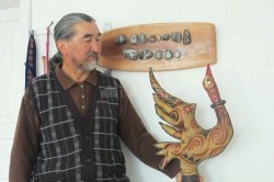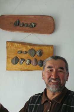Житель Тюпа занимается изготовлением различных сувениров из камня, шкуры и дерева
